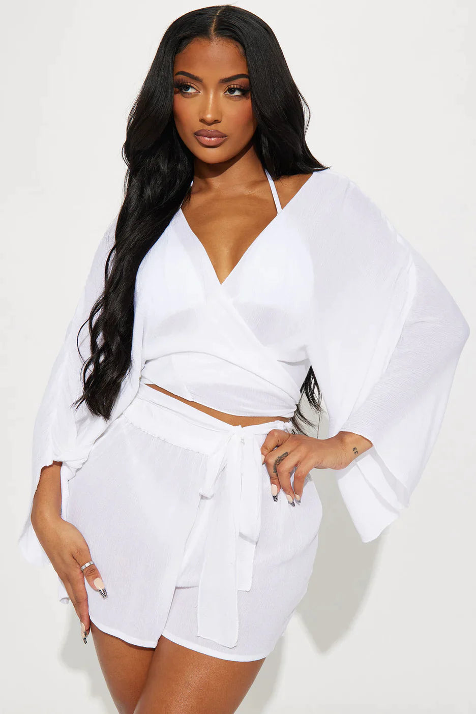 Breezy Nights Linen Swim Cover Up Set - White