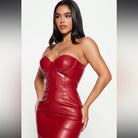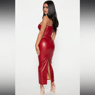 Fall Leaves Faux Leather Midi Dress - Burgundy