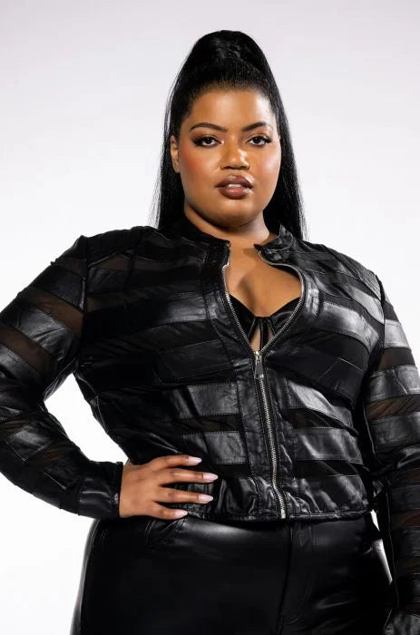 PLUS AZALEA WANG NOW AND FOREVER SHEER PANEL MOTO JACKET
