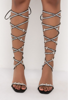 DIAMOND SKULL STILETTO SANDAL IN BLACK