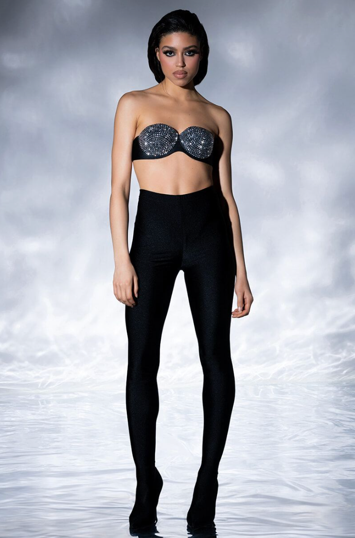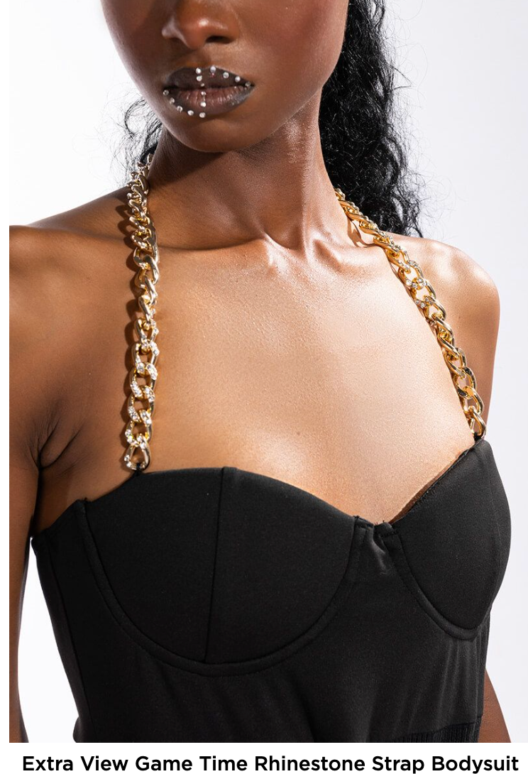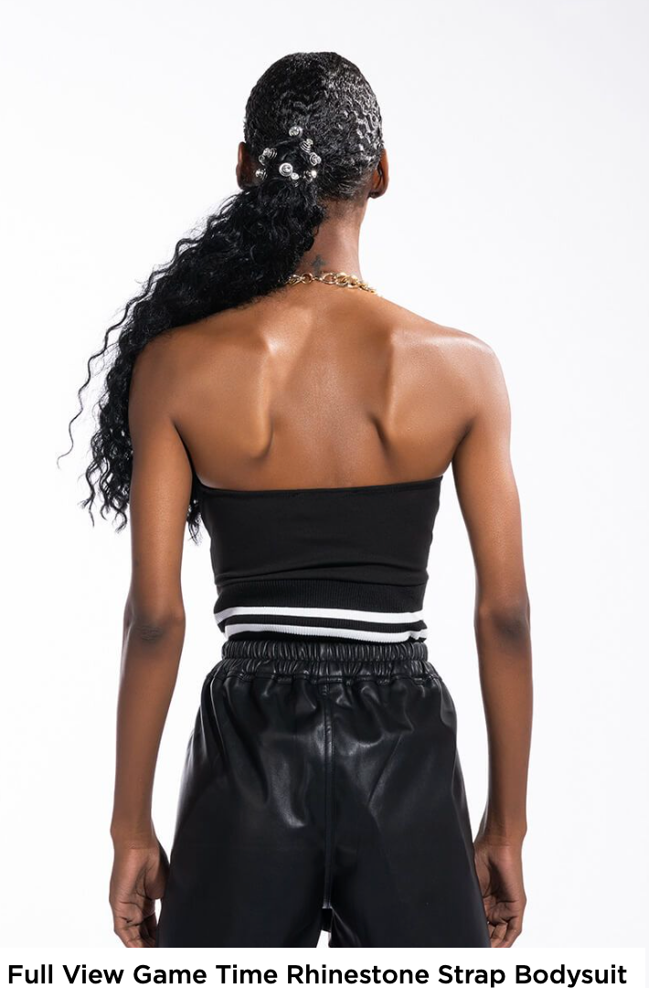 GAME TIME RHINESTONE STRAP BODYSUIT