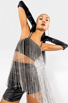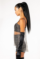 MOONCATCHER RHINESTONE FRINGE SLEEVELESS CROPPED BLOUSE